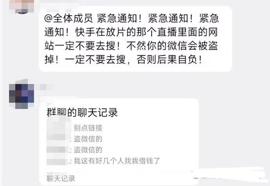 多个微信群传播,搜索进入快手直播网站,微信的钱会自动被盗。