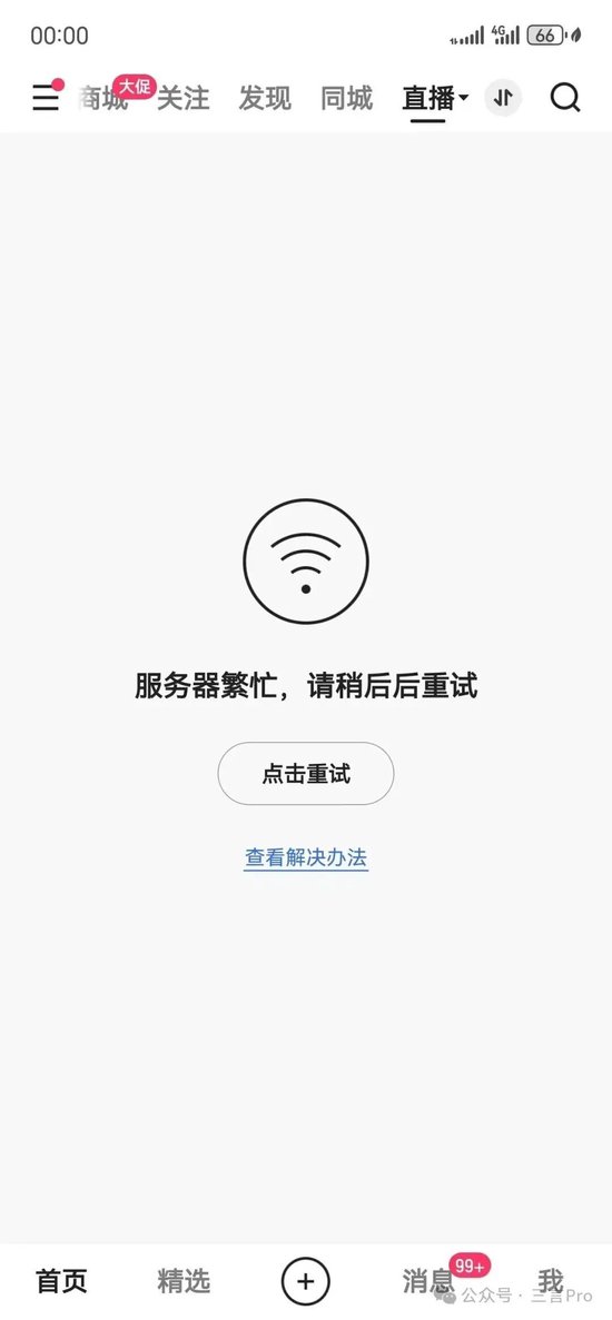 12月23日0点,快手平台方面才“觉察”,开始大规模处置,直播频道显示“服务器繁忙,请稍后重试”;他短视频频道页面均正常,只有直播页面无法查看。
