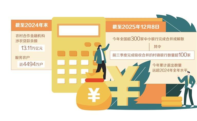 今年以来,中小银行兼并重组提速。万得数据显示,截至2025年12月8日,今年全国超300家中小银行完成合并或解散,其中前三季度完成吸收合并的村镇银行数量超100家,今年累计退出数量远超2024年全年水平。为何中小银行退出数量增多?重组后如何更好赋能实体经济?