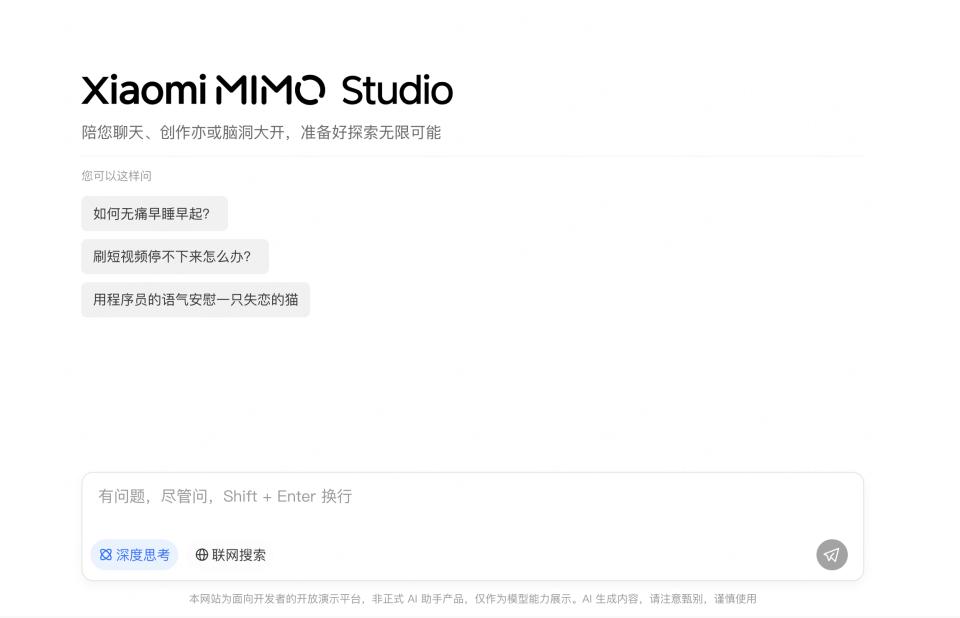 MiMo Studio,虽说目前还只是个面向开发者的演示平台。