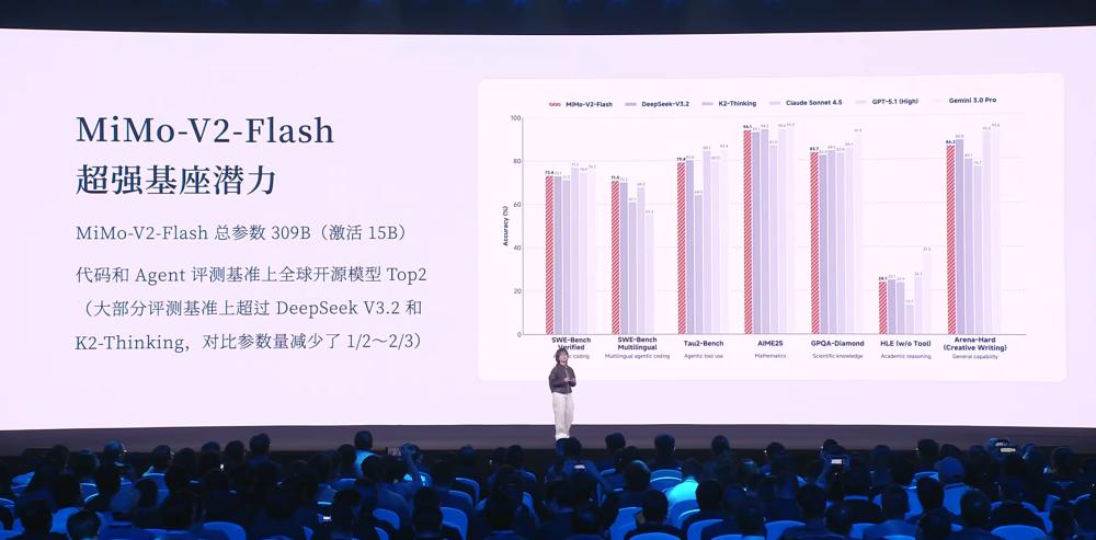 MiMo-V2-Flash 一上来,也是直接和目前,最顶尖的开源大模型掰手腕。